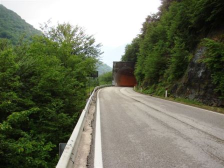 Die neue Straße verläuft gleich oberhalb und wurde mit großem und zweifelhaften Aufwand gebaut. Der Berg rächte sich mit Felsstürzen und Bergrutschen. Die KuK Ingenieure wußten es besser, sie bauten die alte Straße in Tunneln unterhalb der gefährdeten Bereiche und hielten die Steigungen wesentlich niedriger. Es gab halt eine Kurve mehr, aber dafür funktionierte die Straße perfekt.VJ |