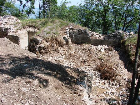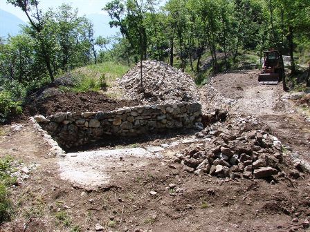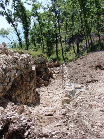 Finaler Status, jetzt wird nur noch gesäubert und zwei weitere Stellungen werden nur "geputzt". Es handelt sich um eine 4-geschützige Batterie mit 9cm/M75 Kanonen. Stato finale della batteria campale a Pontesel vicino al´entrata nella batteria in caverna. Altre due postazioni vengono solo puliti.Trattasi di una batteria di 4 cannoni 9cm/M75. VJ