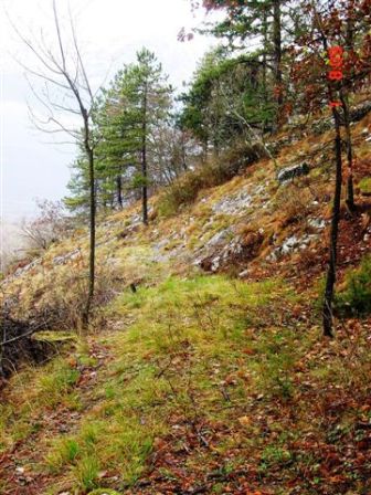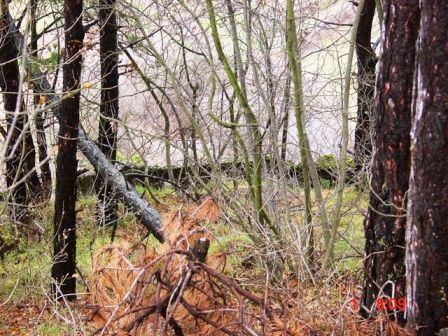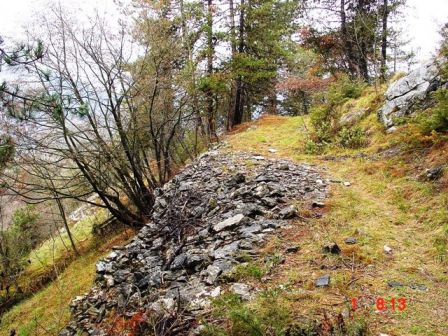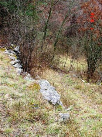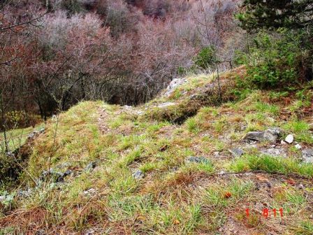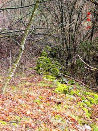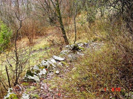 Teilansichten der Linie von der Armierungsstraße aufgenommen. Sie beginnt beim Fundament einer Baracke , eine Abzweigung führt in einer Kurve zum Eingang der Linie. Fast unglaublich, aber sollte es sich um eine reine Baustraße für die Errichtung der Linie handeln? VJ