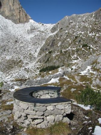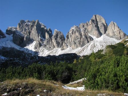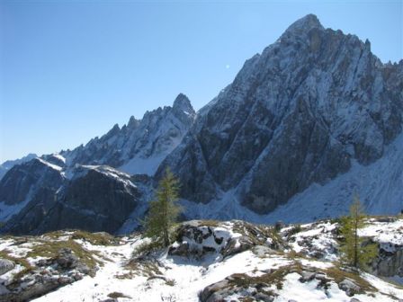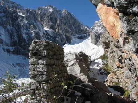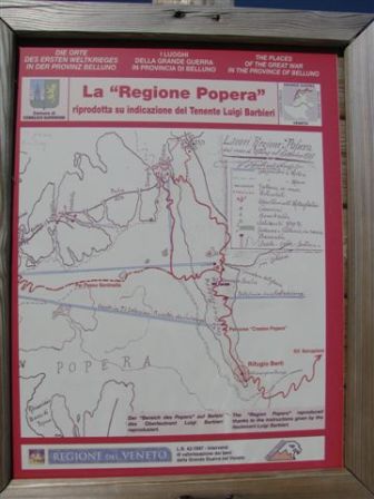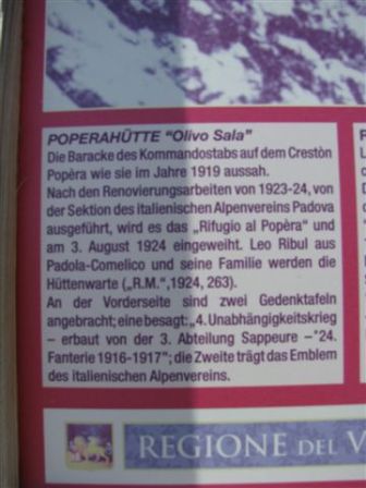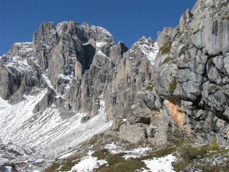 Karl-Heinz.Ruhs Anreise: Auf der SS52 über den Kreuzbergpass Richtung Padola, vor Padola rechts ins Val Grande abbiegen. An den Thermalquellen (Centro Turistico Termale), die offenbar neu entdeckt oder wiederbelebt wurden, vorbei bis zur Lunellihütte (Rifugio Selvapiana I. Lunelli) 1568m. Hier parken. Dann auf gutem, aber teilweise recht steilem Wanderweg zur Bertihütte (Rifugio al Popera A. Berti) 1950m. Von hier aus zum ex-Rifugio Sala (Militärhütte benannt nach General Sala) 2050m. Überhalb der Salahütte hält man sich links Richtung Forcella Popera und erreicht den Aussichtspunkt auf Rotwand, Sentinellascharte und Arzalpensattel. Von hier auf altem Kriegssteig mässig ansteigend bis zum Arzalpensattel (Forcella Popera) 2298m.