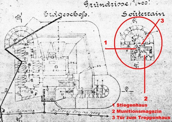 I scavi di sondaggio per la batteria MARANZA trovavano secondo un analisi del disegno le posizioni 1,2,3 e anche i resti della posizione 4. Errata corrige: Il numero 3 e una casematta adebitata com dormitorio per la truppa. Saluti, VJ Die Sondierungsgrabung der Batterie Maranza fand di Positionen 1,2,3 und Reste der Position 4. Errata corrige: Die Position 3 ist eine Kasematte (Truppenunterkunft). 1: Stiegenhaus, 2: Munitionskasematte, 3: Kasematte und 4: Proviantmagazin. Gruss, VJ