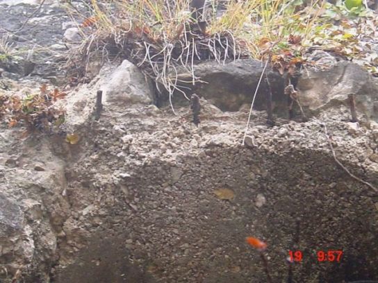 Stahlbeton der Einfassung noch erhalten. Interessant die Details der