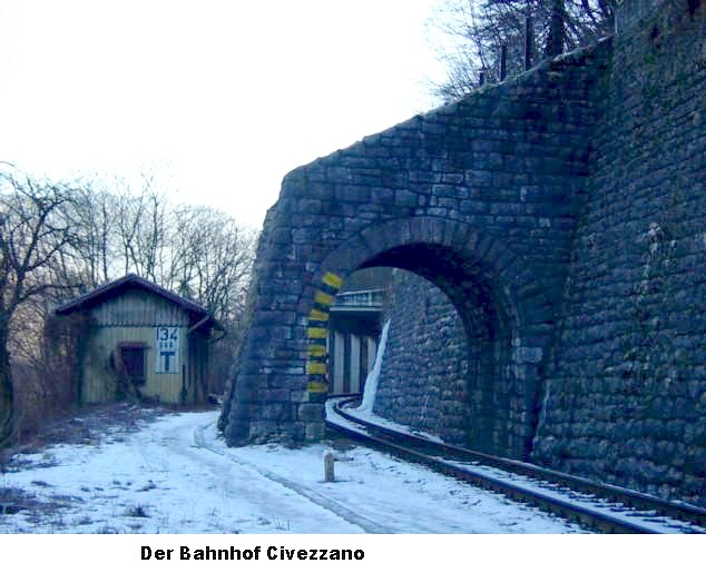 Der Bahnhof Civezzano und die untere Straßensperre Civezzano