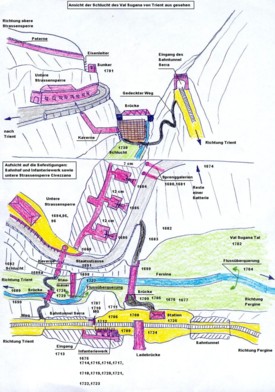 Das ist die Fersina Schlucht bei Civezzano, rechts der Eingang zum Serra Eisenbahntunnel (mit dem Auswurf des Gesteins Tunnel- und Gewehrgalerie Civezzano) und rechts hinter der Kurve kommt die untere Straßensperre Civezzano- Gruss VJ |