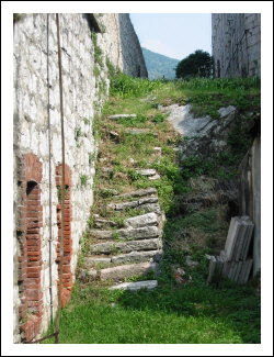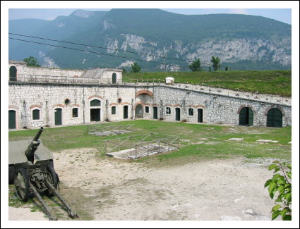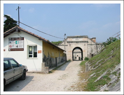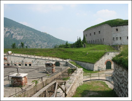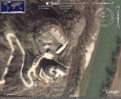 Die Batterie ist nördlich unter dem Ex Forte Rivoli erbaut mit der Schussrichtung Nord und Ost. Der Parkplatz ist am Fuß des Berges. Von dort geht es auf der ehemaligen Werkstraße in Serpentinen zum Ex Forte, es kann besichtigt werden.