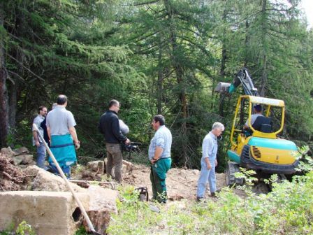 hatten.. Auch der jüngste Freiwillige ist voll mit dabei! Ormai i dipendenti dell´Azienda Forestale sono i veri professionisti per il recupero della ns. fortezza! Senza di loro non faro mai uno scavo, basta spiegare i disegni originali, spiegare bene che cosa si aspetta da trovare e quale funzione aveva il resto del manufatto militare trovato. L´Azienda del comune e diventato un´azienda specializzato anche per i scavi archeologici e pensate bene: E ´l´unica che abbiamo. Spiego alcune cenni storici della ns. fortezza, traduco dal tedesco in lingua italiana,sopratutto i particolari sui disegni. Anche il pu giovane e molto interessato! VJ