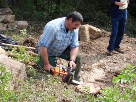 Muntionsmagazin... La grande sopresa: La porta verso il giroscala principale con il suo fantastico telaio! Un Forestale taglia con la motosega e i resti del telaio della porta del maggazzino delle munizioni...VJ