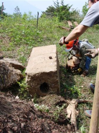 Ein Schornstein der alten Batterie! Und der Türrahmen! Original und