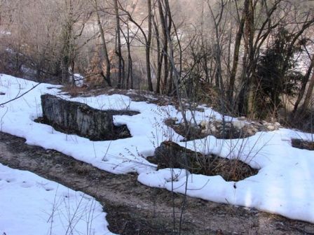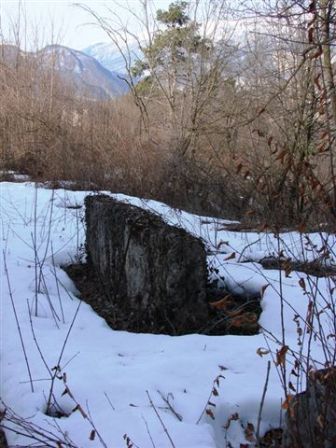 Ruderi della batteria Oltrecastello segno tatico III/10 armata con 2x15cm/M80 mortai. Faceva parte dell´armamento di sicurezza della ns. fortezza. La casetta in mezzo della batteria non e´originale. Ci sono i resti di una piccola riservetta .