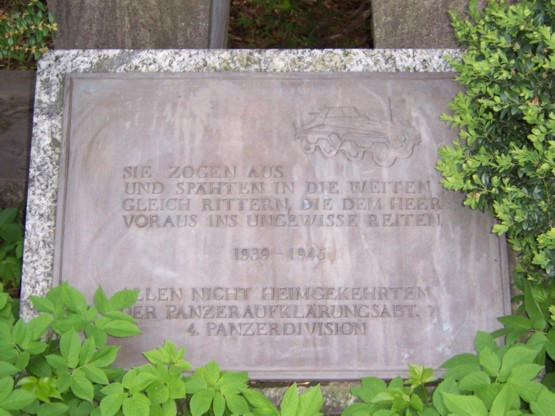 Das kleine Denkmal liegt an der nördlichen Auffahrt von der Theresienwiese zur Bavaria direkt am Bavariaring, rechts Richtung Landsbergerstr. Direkt oberhalb der neuen "schönen" Zweckbauten auf der Wies´n. Ich hoffe du kannst etwas auf den Bildern erkennen. Am Gedenkstein steht: Im Kampf für das Vaterland starben den Heldentod 260 Offiziere, Unteroffiziere und Mannschaften der KGL Bay. Kraftfahrtruppe 1914- 1918. Sie zogen aus und spähten in die Weiten gleich Rittern die dem Heer voraus ins Ungewisse reiten 1939- 1945. Allen nicht Heimgekehrten des Panzeraufklärungsabt. 7 / 4. Panzerdivision Vielen Dank an Roger für die Info.