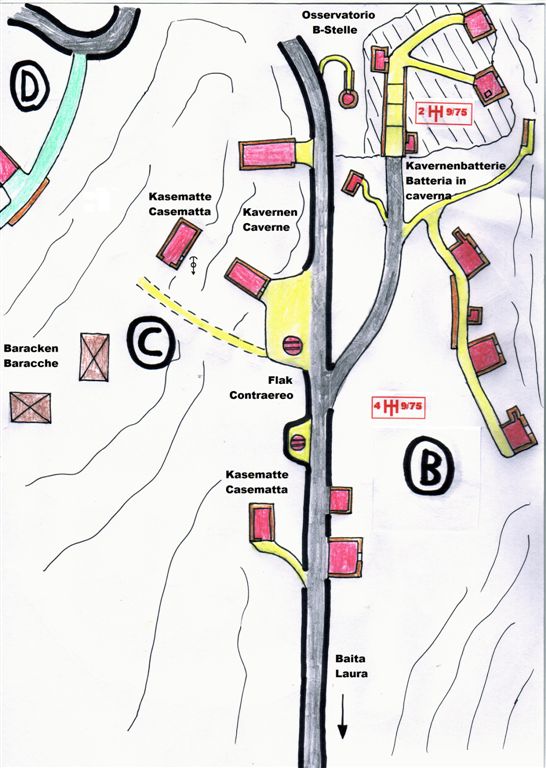 base d´artiglieria sul Soprasasso-Nord Zeichnung der Bereiche B und C bei Pontesel der Artilleriebasis Soprasasso-Nord. Saluti, VJ