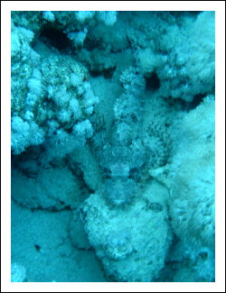 Ein Skorpionfisch in ca. 30 Meter Tiefe, hier hat die Camera schon