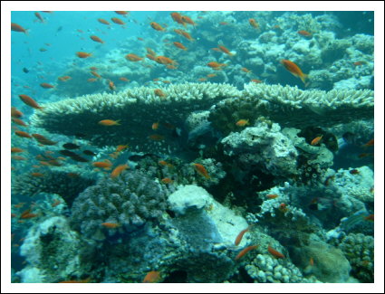 Blau- und Grüntöne herrschen natürlich in der Tiefe vor und