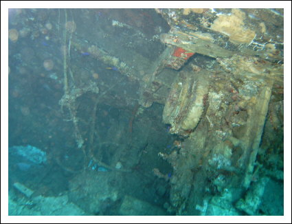 Im Wrack am White Knight Canyon, unten im Maschinenraum mit dem