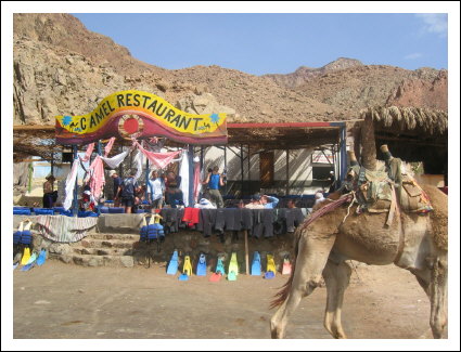 hielten vor dem Camel Restaurant und warteten auf unser Tauchzeug,