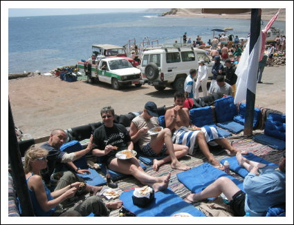 Vor uns ein Rudel Taucher, das dem Einstieg/Ausstieg zustrebt.