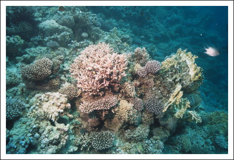 An der sonnendurchfluteten Seite wachsen viele Korallen, die von kleinen