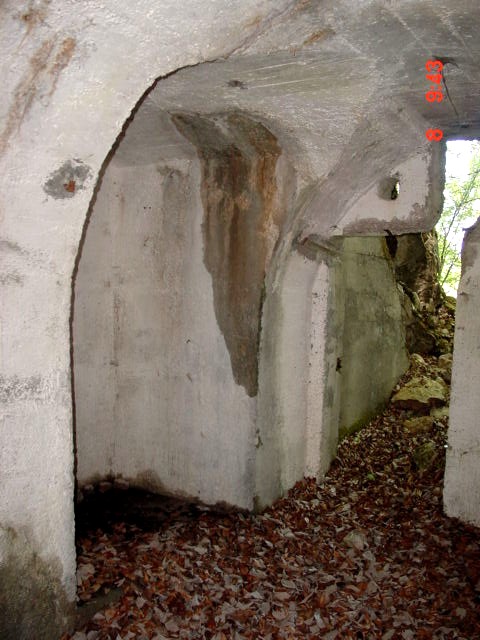Diese Kavernen dienten als Unterkunft für die Batteriebesatzungen und Offiziere. 2 Kavernen sind komplett erhalten, es gab aber mindestens 2 mehr. Diese wurden durch die Eisensammler komplett gesprengt. Von den Kavernen gehen direkte Zugangswege zu den einzelnen Geschützstellungen. Von diesen gibt es sehr viele, alle durch Armierungstrassen erreichbar. Viele davon waren Ausweichstellungen und/oder auch Scheinstellungen. Die Stellungen entsprechen sprichwörtlich dem Handbuch! VJ