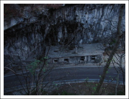 geht es steil über eine Felswand zum Fluss und zur Straße
