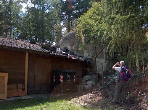Markierungen zu den Bunkern und Fotos (auch im Rücken des Fotografen)