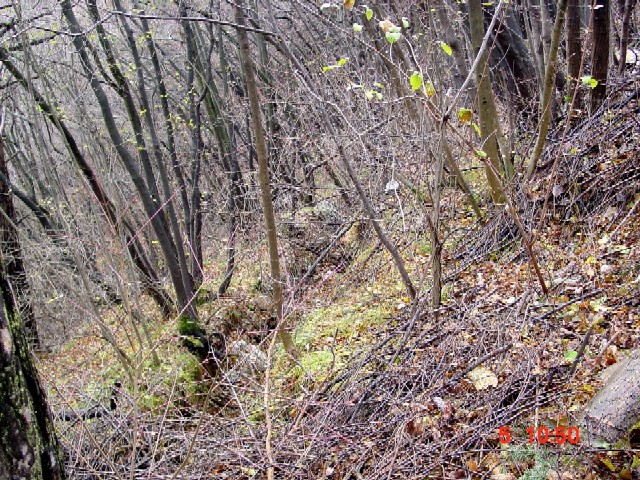 Blick nach Osten (bergab) mit der alten Straßenführung