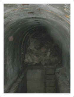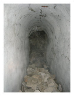 Blick nach rechts, der Ausgang ist verschüttet,