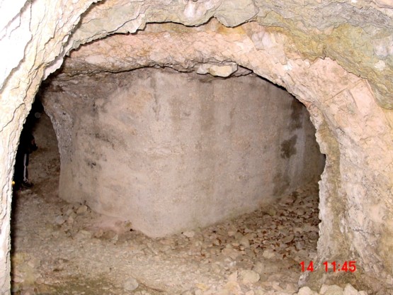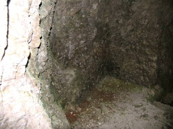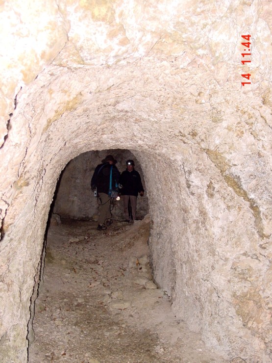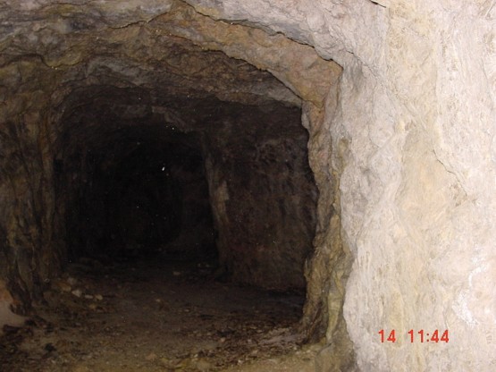 Der Weg zum Ende des Stollens mit den zwei Kavernen