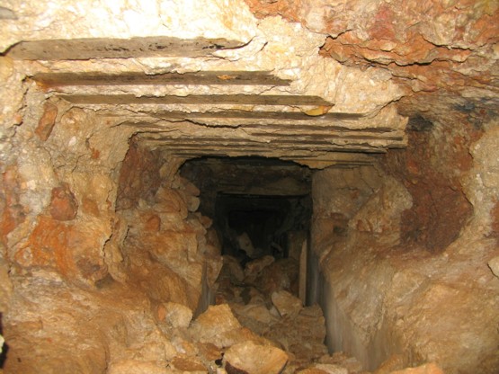 einen Nebel. Die Decke ist vor dem schmalen Stollen noch oben.