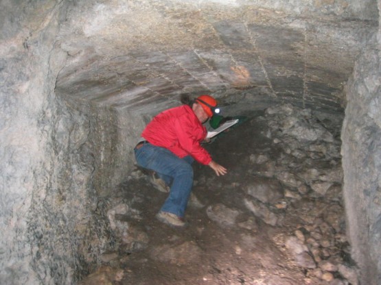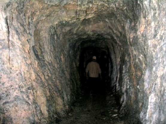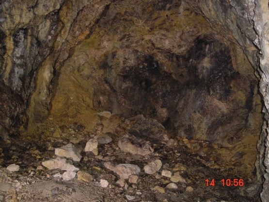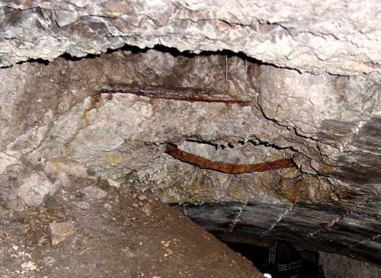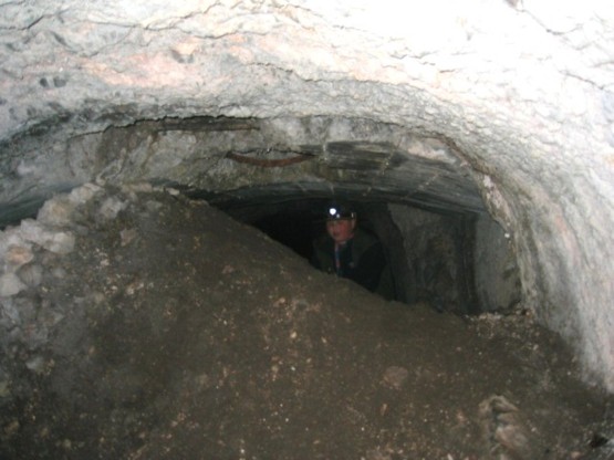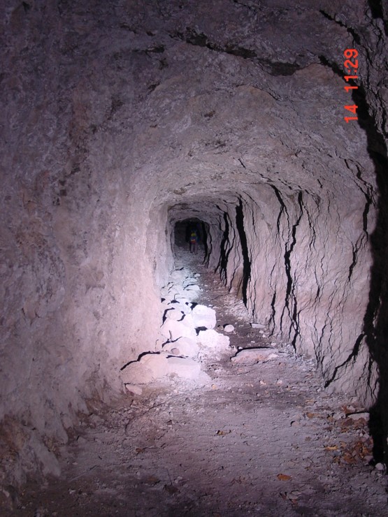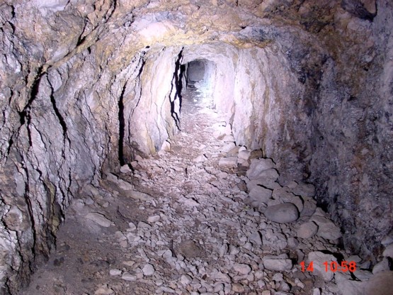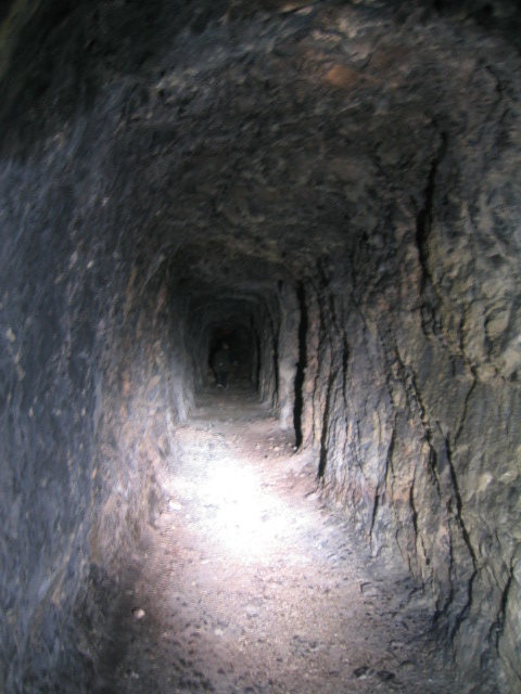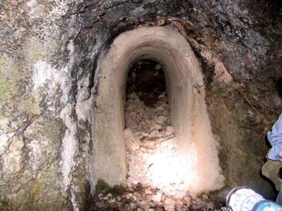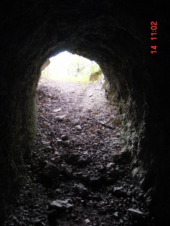 Zurück im steilen Stollen geht es an Munitionskavernen vorbei zu den