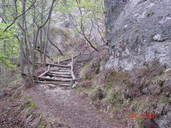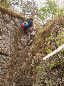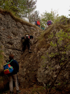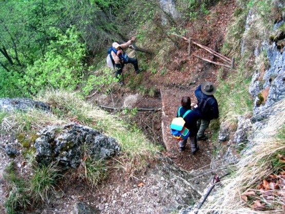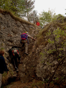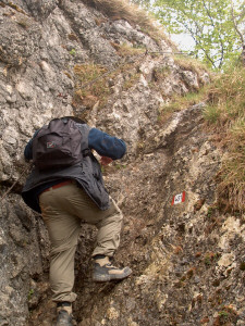 So kamen wir an einem mit einem Stahlseil gesicherten Steilstück an.