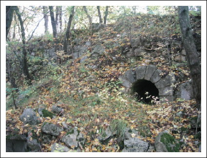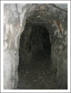 Tunnels. Bei der stabilen Schichtung des Felsen ist er nur ausgeschlagen