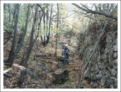 Der frühere Schützengraben windet sich weiter am Hang nach unten und