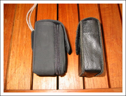 Links die Tasche der IXUS-V2, rechts die Tasche der IXUS-300.