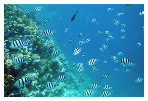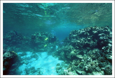 mit vielen Fischen in der geschützten Lagune