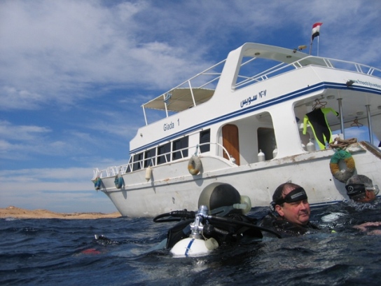 schwammen im Meer, wo uns die Crew des Bootes eine Leine zuwarf und uns aufnahm.