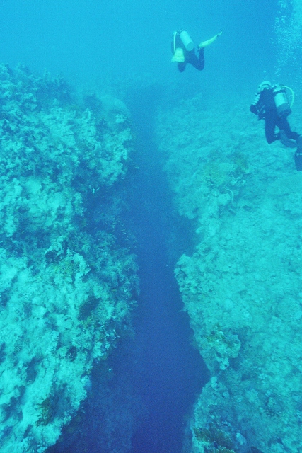 drangen immer noch durch das poröse Korallenriff entlang des Canyons.