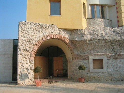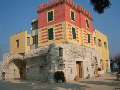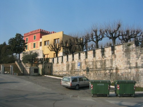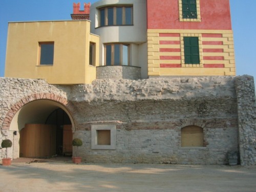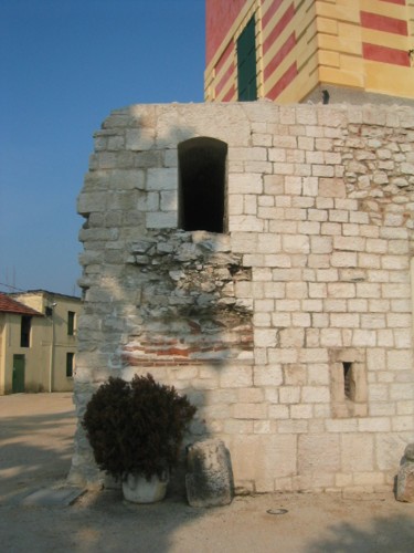 kleinen Hafen für Sportboote. Eine Zinnebewehrte Mauer sind von diesem