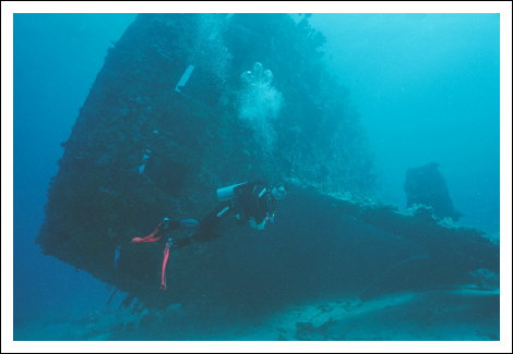 Konturen annehmen. Beginnt man den Tauchgang am Heck, sieht man das