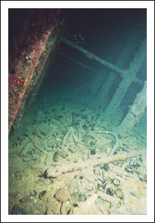 Nach ca. 30m erreicht man das Trümmerfeld in der Schiffsmitte. Hier ergibt