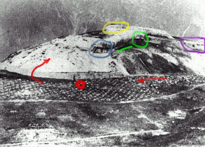 Öffnungen zu den Kasematten des Werks sind. Auf