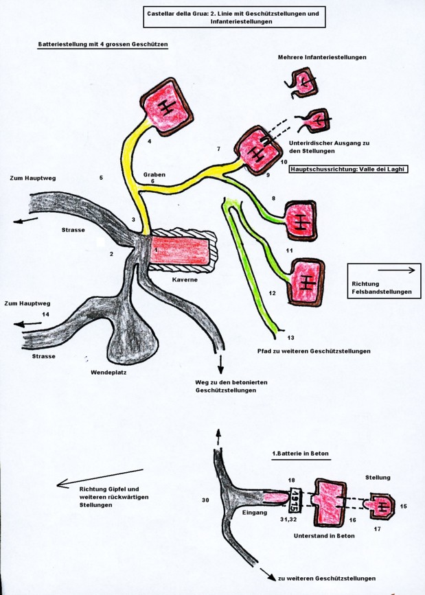 Der Artilleriestützpunkt Castellar della Grua Plan der Kavernen und der 1.Batterie Ulrich