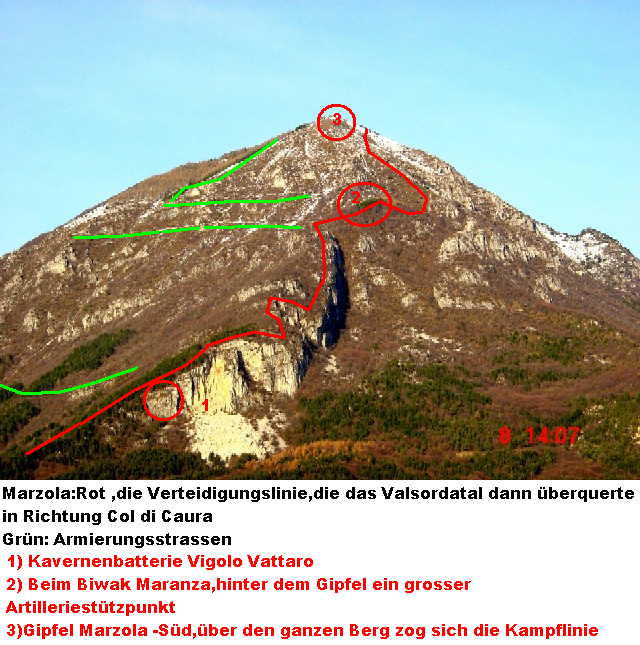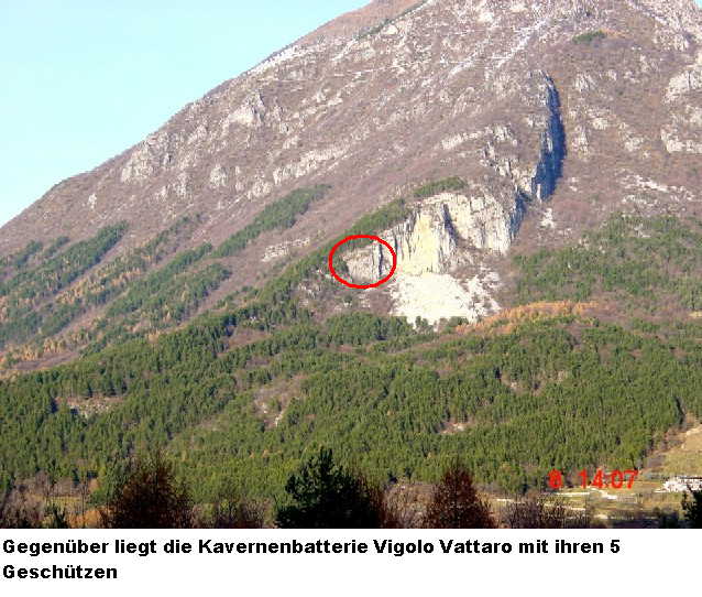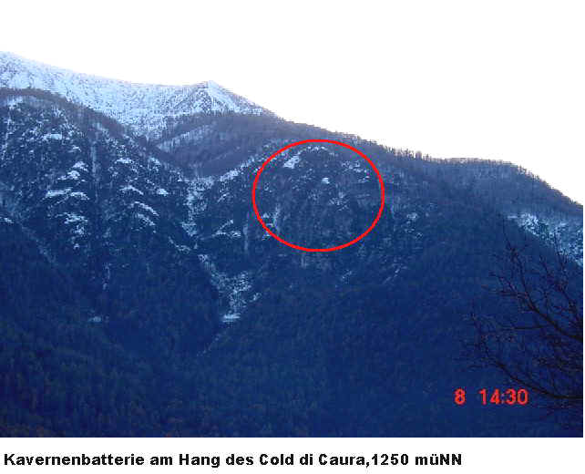 1719: Dar Südhang des Marzola Massiv , im Hang die Kavernenbatterie