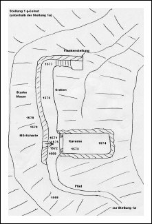 Diese Verteidigungsstellung mit Kaverne liegt unterhalb des Artilleriewerkes im Betonbunker (Stellung 1a) und ist mit dieser durch einen Weg verbunden.