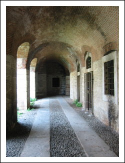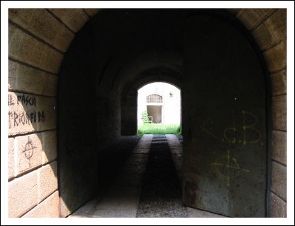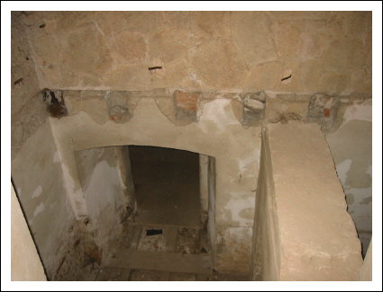 Bei dem zweiten Torbogen links geht der Weg zu den Kellergeschossen.