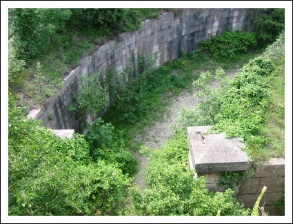 Deutlich ist der bewachsenen tiefe Graben zu sehen.