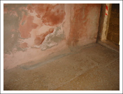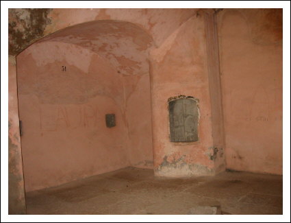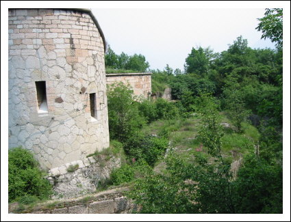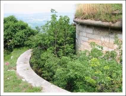 Die zwei Gräben. Links die Fensterscharten beim kleinen Treppenaufgang.