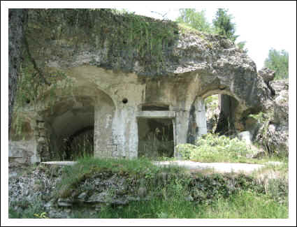 Die noch erhaltenen Kasemattenteile. Gut ist die Dicke der Decke zu