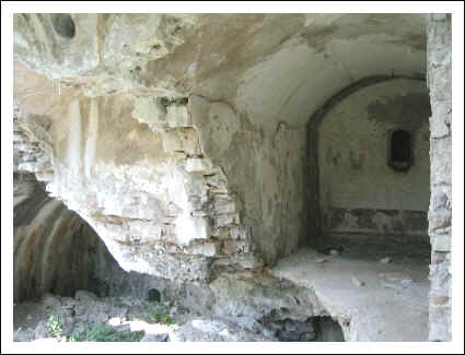 Die Reste eines Geschützbrunnen in der dicken Decke.