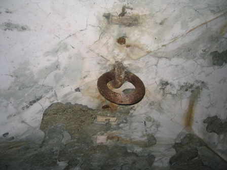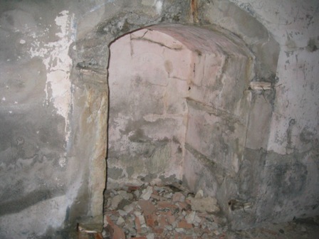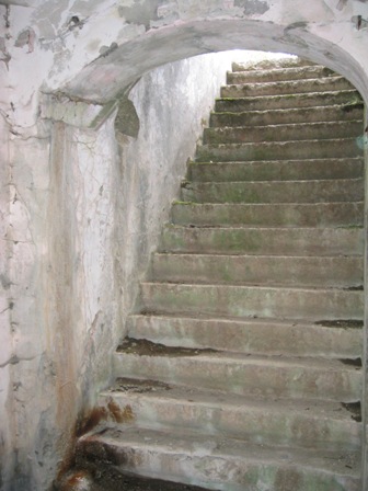 Links der Aufgang zu den Geschütztürmen, dann die kleine Vorratsnische