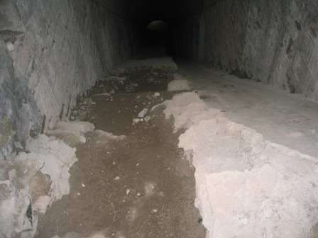 Links die Treppen, rechts eine Schräge für den Munitionstransport.